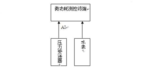將防水外罩安裝在監(jiān)測井井壁上,微功耗測控終端放置在防水罩內(nèi)。壓力變送器信號線、水表信號線接在微功耗測控終端自帶的防水接線盒上。
