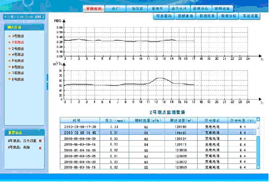 城市供水管網(wǎng)監(jiān)測系統(tǒng)適用于供水企業(yè)遠(yuǎn)程監(jiān)測供水管網(wǎng),工作人員可以在供水公司調(diào)度中心遠(yuǎn)程監(jiān)測全市供水管網(wǎng)的壓力及流量情況?茖W(xué)指揮各水廠啟停供水設(shè)備,保障供水壓力平衡、流量穩(wěn)定;及時發(fā)現(xiàn)和預(yù)測爆管事故的發(fā)生。